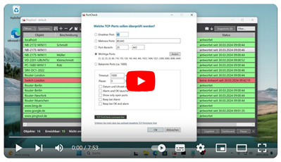 features including pinging objects and checking TCP ports: